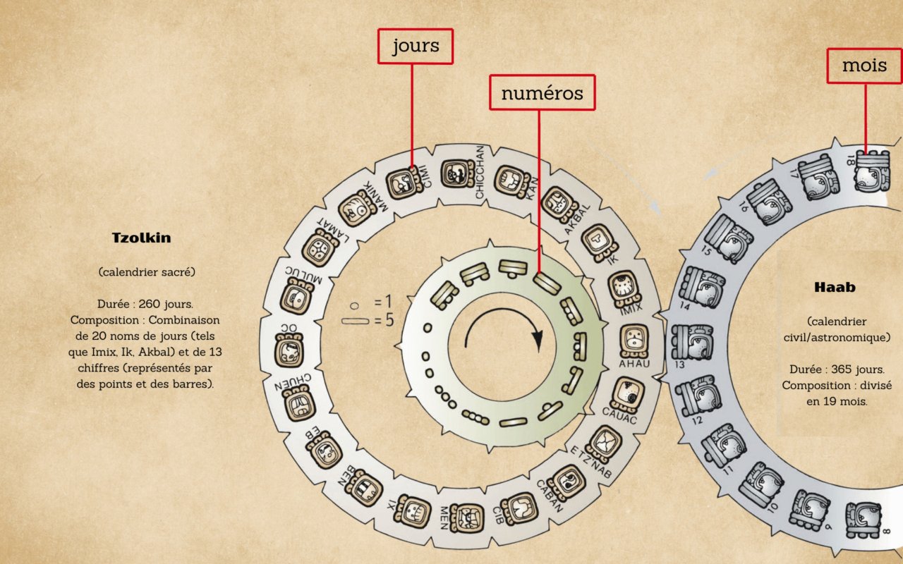 Les Mayas suivent un cycle calendaire de 52 années, lui-même issu de deux cycles : le Haab et le Tzolkin, fonctionnant simultanément, mais indépendamment l’un de l’autre.