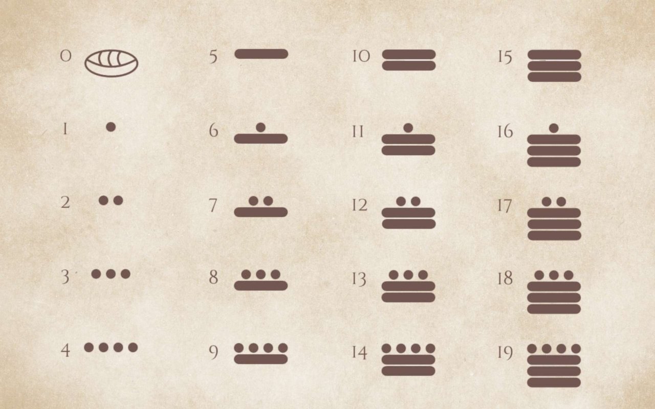 Ce système vicésimal était également utilisé par les Gaulois et les Basques. Pour les calculs, ils n’utilisent pas les glyphes, mais des signes très simples : La coquille pour le zéro. Le point pour une unité. Le tiret pour cinq unités.