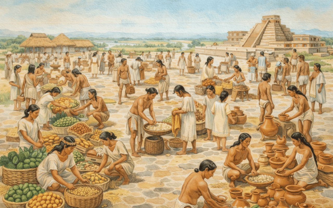 Leur société était hiérarchisée, avec une élite dirigeante composée de rois, de prêtres et de nobles, tandis que la majorité de la population travaillait dans l’agriculture. Le maïs constituait la base de leur alimentation et occupait aussi une place centrale dans leur vision du monde.