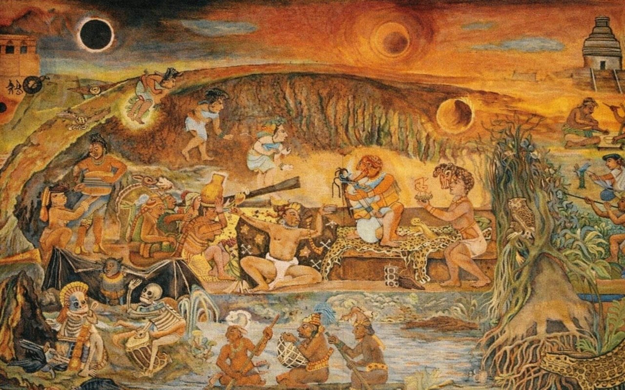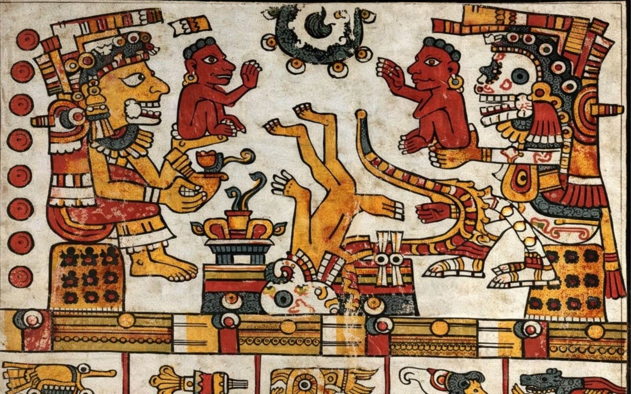 Chez les Mexicas (Aztèques), la mort était intégrée à une vision cyclique du cosmos. Le devenir de l’âme dépendait des circonstances du décès plutôt que d’un jugement moral. La majorité des défunts entreprenait un voyage vers le Mictlán, un inframonde structuré en plusieurs niveaux, symbole d’un retour progressif à l’origine. D’autres destins existaient, liés aux forces naturelles ou à des morts considérées comme sacrées, révélant une lecture du monde où la mort participait à l’équilibre universel.
