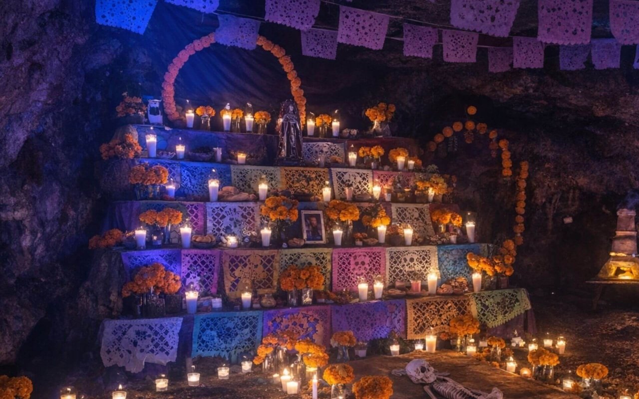 D’autres cultures, comme les Purépechas dans l’actuel Michoacán, entretenaient également des rituels dédiés aux ancêtres, souvent liés aux cycles agricoles et au renouvellement de la vie. Dans ces sociétés, la relation avec les défunts faisait partie d’un équilibre plus large entre monde visible et invisible. Cette continuité explique pourquoi, aujourd’hui encore, les offrandes, la nourriture ou certains symboles ne sont pas perçus comme des éléments décoratifs, mais comme des gestes hérités de pratiques anciennes.